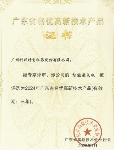 此次广州科联精密机器股份有限公司产品荣获名优高新技术产品评定,不仅是对其产品的肯定,更是对公司多年来坚持技术创新、品质至上发展理念的认可。未来,公司将以此为契机,继续加大研发投入,不断提升产品性能与技术水平,为染整行业带来更多优质、创新的产品,推动行业向更高水平迈进,在全球染整设备市场中绽放更加耀眼的光芒。